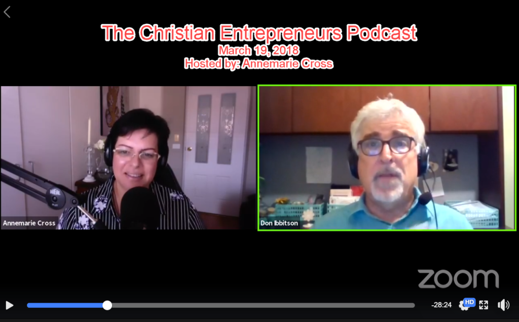 Dr. Don was a guest on “The Christian Entrepreneurs Podcast” hosted by Annmarie Cross. The show is based in Australia so this interview was recorded at 12:30 am EST! Praise the Lord for strong coffee.